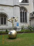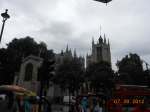 First stop of the day – back to the hotel room to get my umbrella. Took the Underground from Euston to Embankment, exited the wrong way, of course, then found my way to the walk along the Thames. Walked past the London Eye to Big Ben, where it really started raining. I took cover under an awning for a little while, as did many others, but then ventured out. From there, I went to Westminster Abbey, saw a group dancing on the lawn, as well as someone spray painting a picture of Jesus.