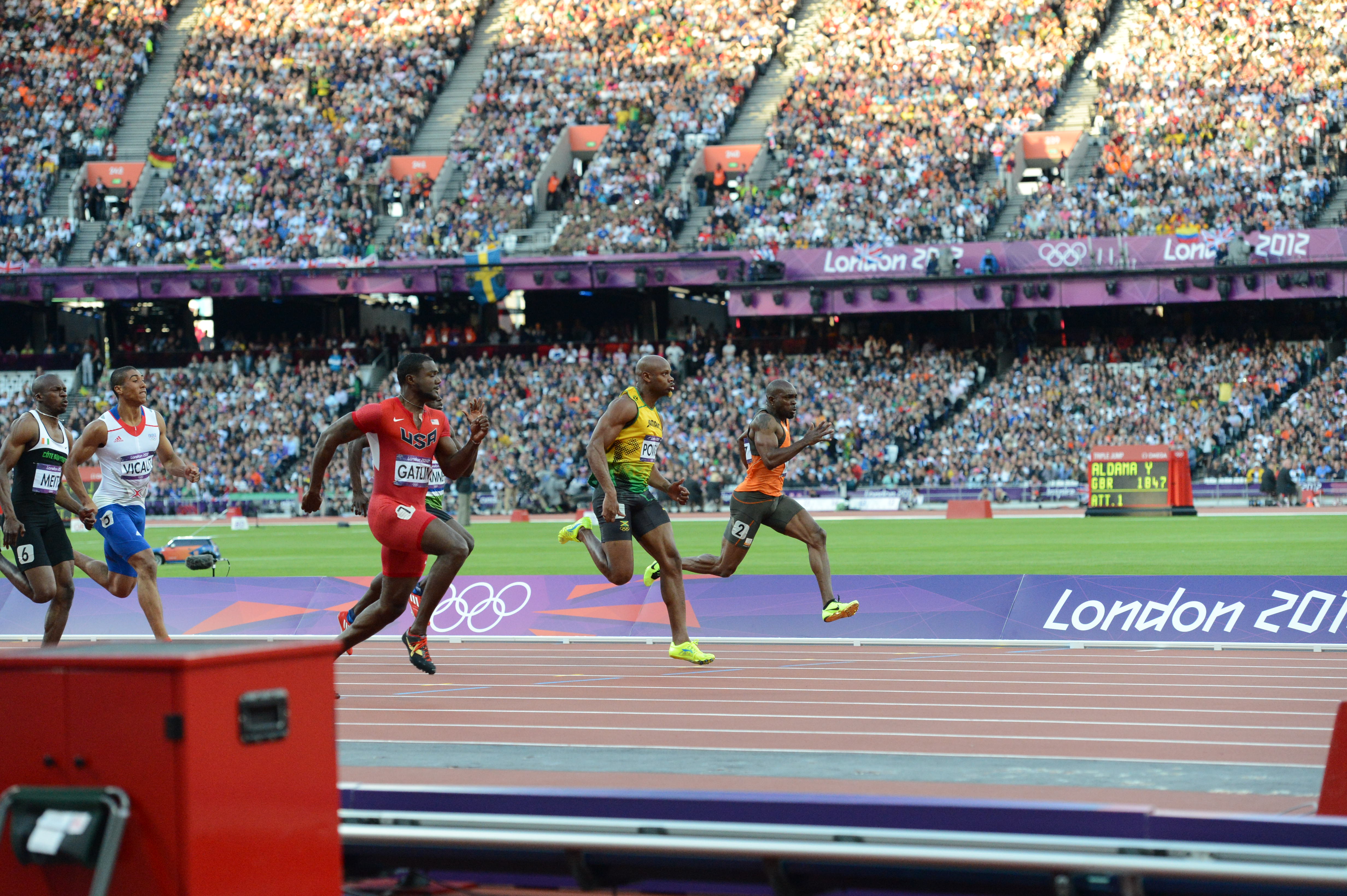 Near the finish in a 100-meter heat