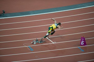 Oscar Pistorius, out of the blocks in a 400-meter heat