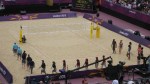 Beach Volleyball takes place in Horse guards parade, just down the road from the Queen’s humble abode. The Union Jack and the Olympic flags are lining the Mall. There are sand sculptures, practice courts and statues of famous volleyball athletes all around St. James’s Park. The main arena fits 15,000 spectators. Dancers in beachwear perform during timeouts and breaks, music plays the whole time and the announcer keeps the crowd laughing. Gamesmaker rakers even out the sand when needed and keep the court’s pink border visible.