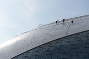 Working on top of the men’s hockey arena.