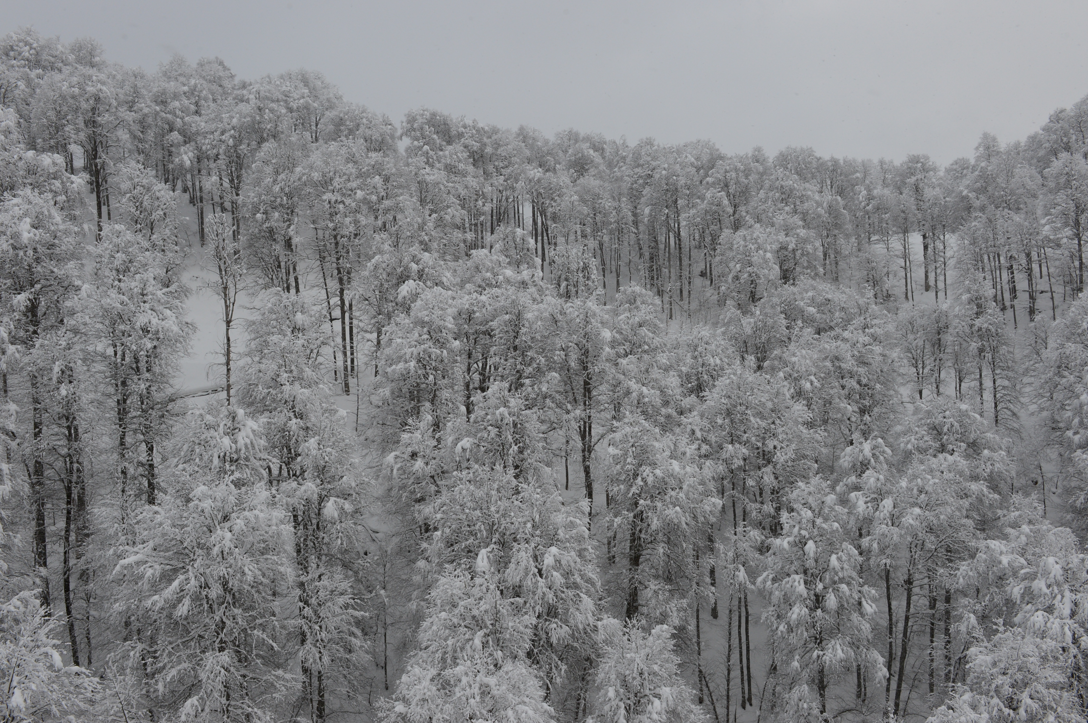 Snowfall on the mountain.