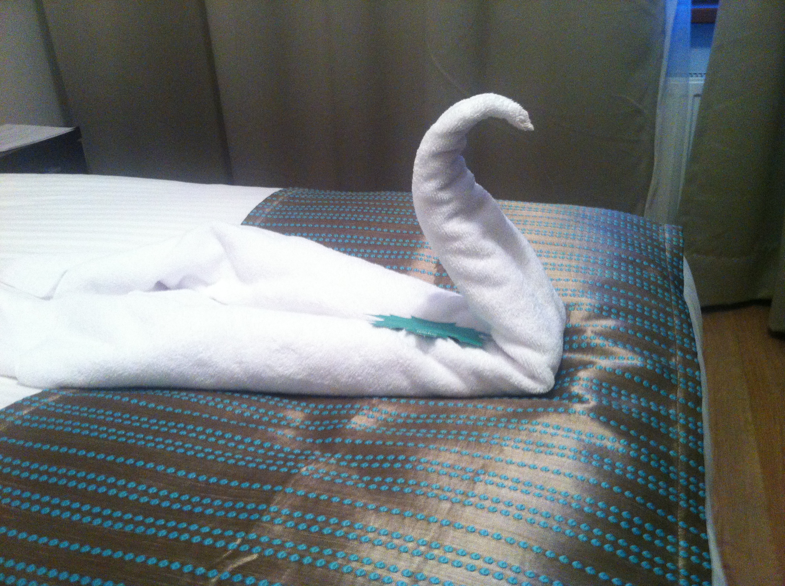 You nailed it minephew. Got home to find water fowl on my bed. A Duck? A Swan? The Loch Ness Monster? Picture has been added above!!! Can’t wait to see what I get tonight!