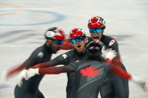 But as fate would have it, his actual cousin (or more accurately, his cousin’s son) was on the Canadian Olympic short track team. So we all grabbed our cameras for what Bedel called a “family outing” and headed to the Capital Indoor Stadium for the men’s short track 5,000-meter relay. Canada was favored. Canada, and Bedel’s our cousin, Jordan Pierre-Gilles, won gold. Family reunions will never be the same.