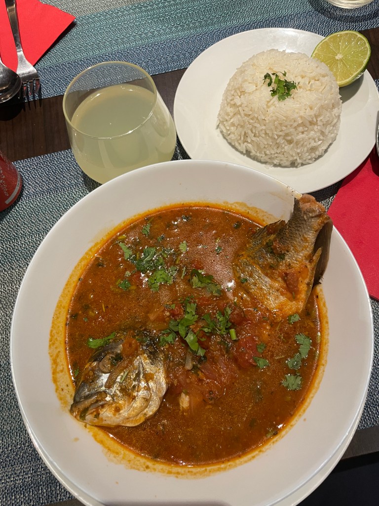 Tonight (Tuesday) we had dinner at a Peruvian restaurant down the block from the hotel. I can neither spell nor pronounce what it was, but it was incredibly good. A whole fish (hopefully not from the Seine) covered in a spicy both and served with rice. I’ll be back!