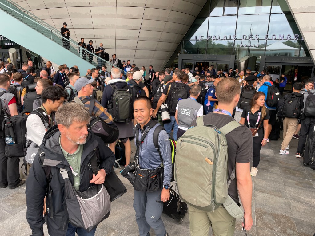 Covering this one was not too unlike standing in Times square for six hours waiting for the ball to drop. The day began with an IOC meeting at 11 a.m. for all 450 photographers who would be spread along the four-mile route. We all had assigned areas and they went over the ground rules and logistics for each. At 1 p.m. we gathered, school trip style, to follow the photo manager assigned to our area, who would guide us to the Seine. It was billed as a prime service. In reality it was a trip on the Metro that turned into a maze of stops and unintended trains because many of the lines we needed to take were already shut down.