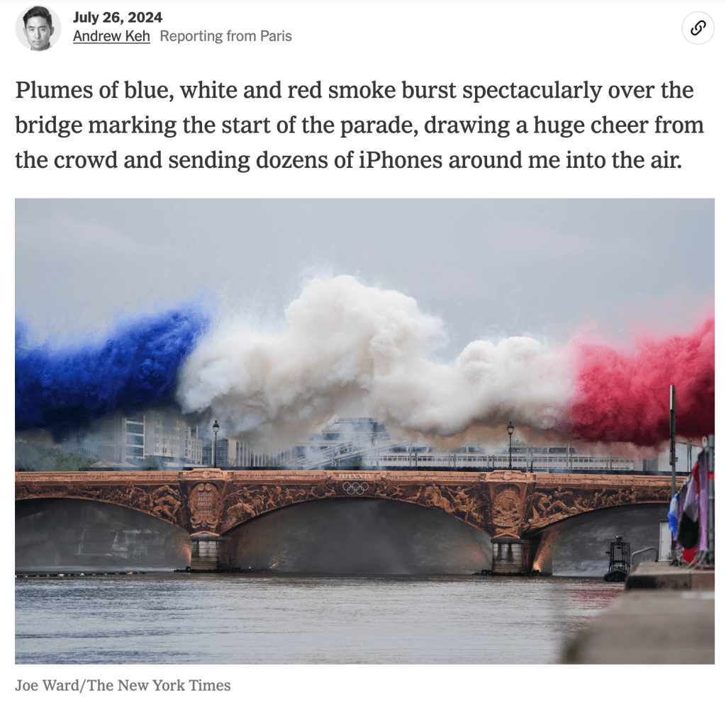 we believe your photo of the bridge to open the ceremony is iconic ! Pics and postcards throughout France….