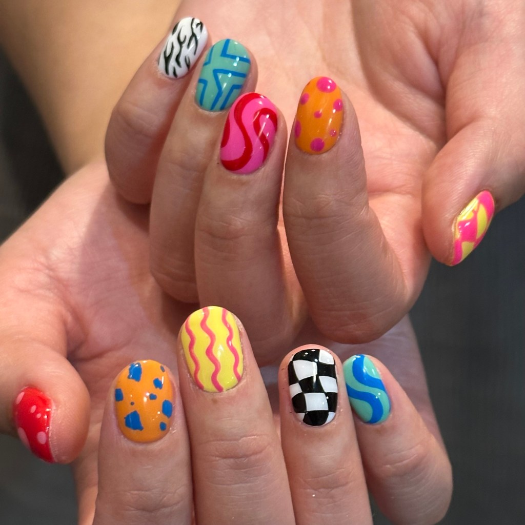 Dawn: Because of the language barrier, I usually show them the design I want, but this time it involved a lot of color changes because I wanted every nail to have different combinations. I did a mockup on my phones drawing app.