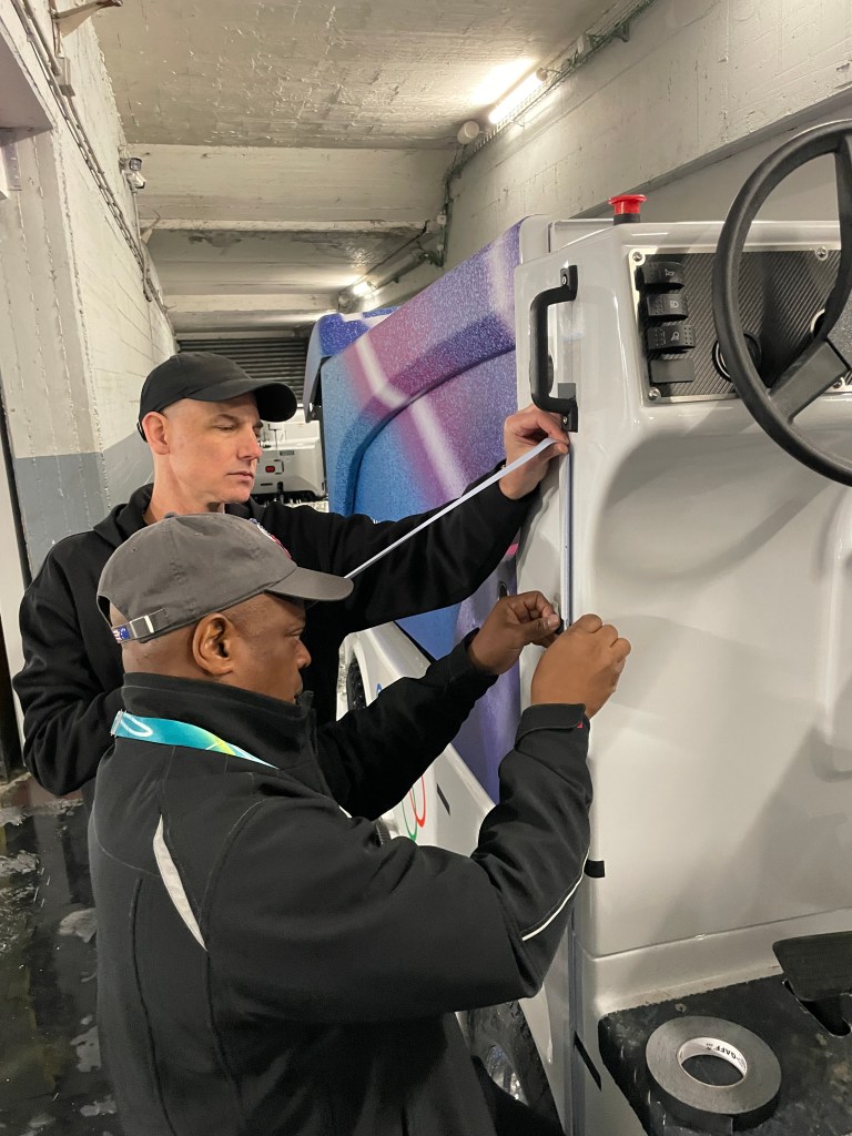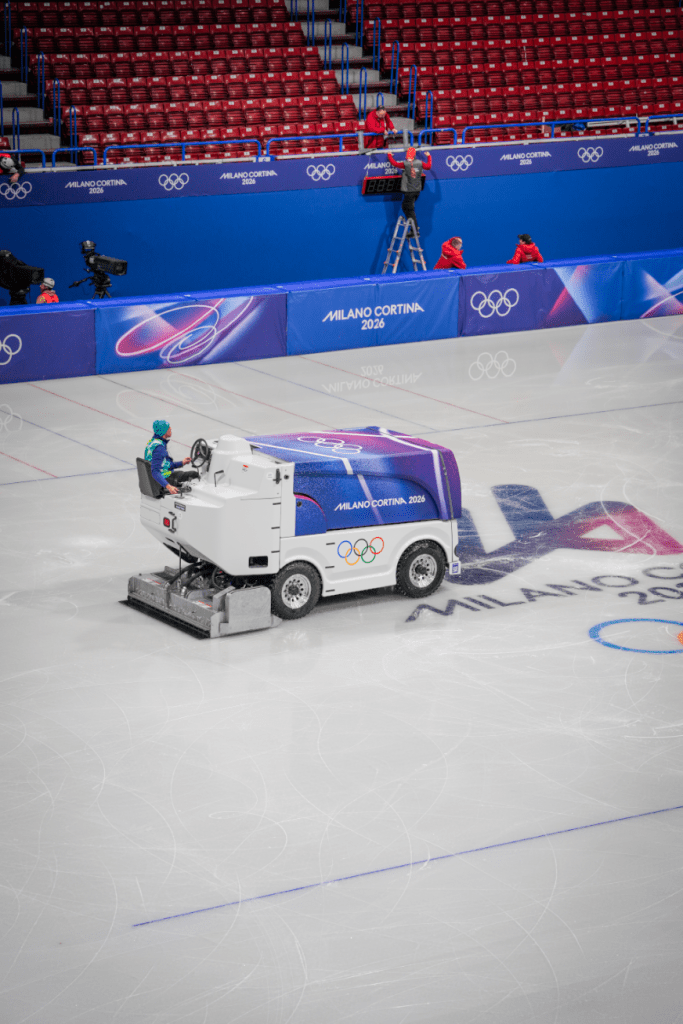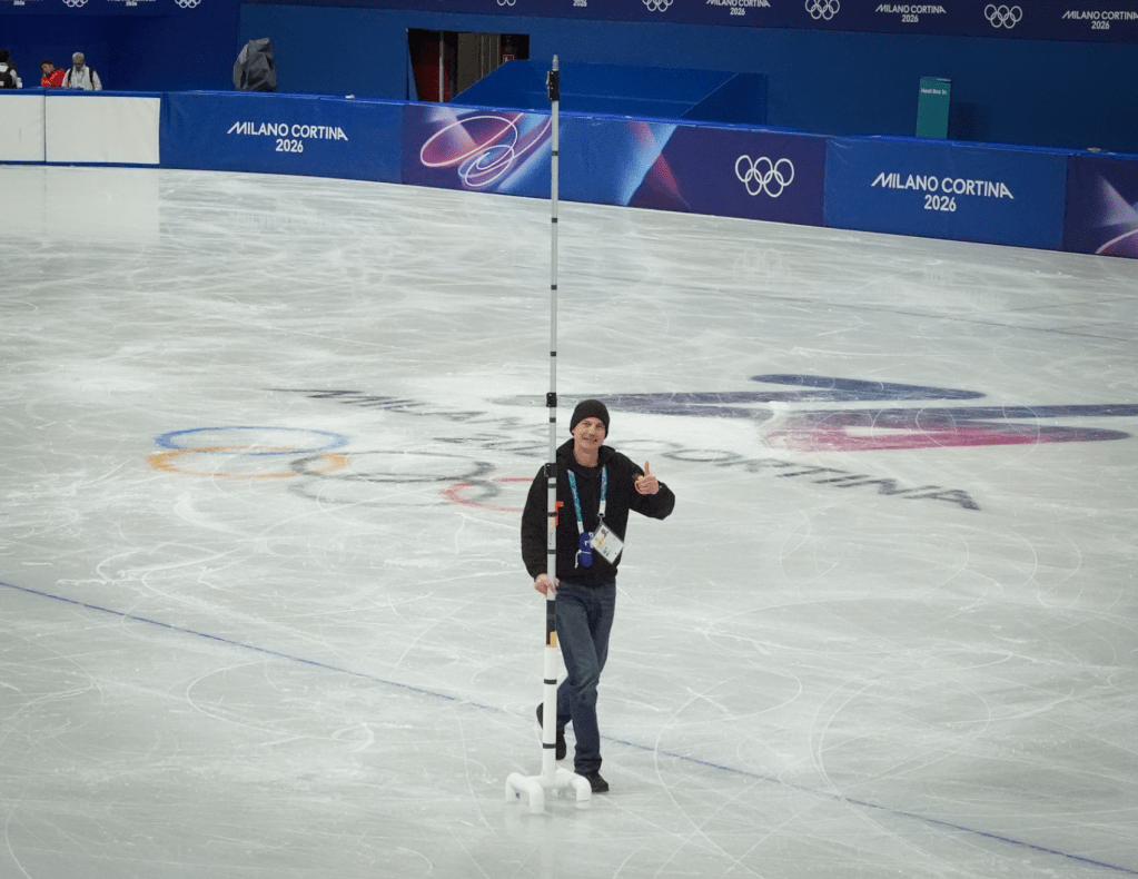 There is, in fact, an ice meister at figure skating and he’s been super helpful with our outlandish requests, which included defacing his Zamboni, and letting my colleague Jeremy White slide across the ice with a giant measuring pole.