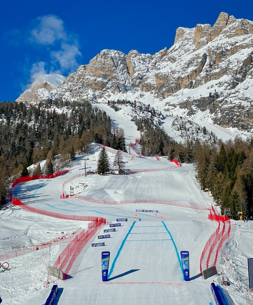 I spent my morning at the bottom of the women’s downhill on a bluebird day with breathtaking views. It was a workday, but the kind of workday that might make you question any retirement plans you have rolling around in your head.