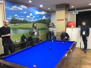 A little pool and beer for Doug Mills’s birthday.