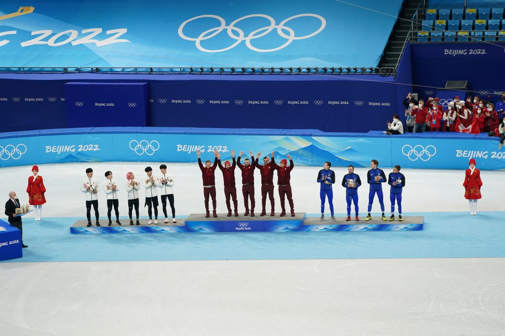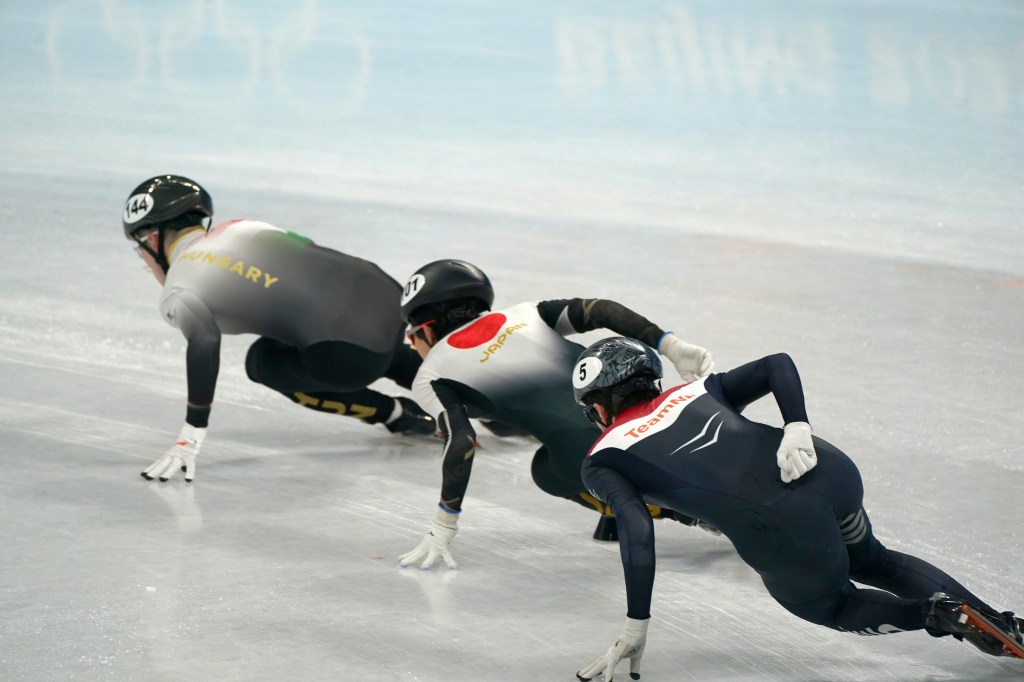 If you’ve seen a short track relay you know it’s mayhem: cutting off your opponents and pushing your teammates. This race was no different. It looked more like a Black Friday sale than an Olympic race.